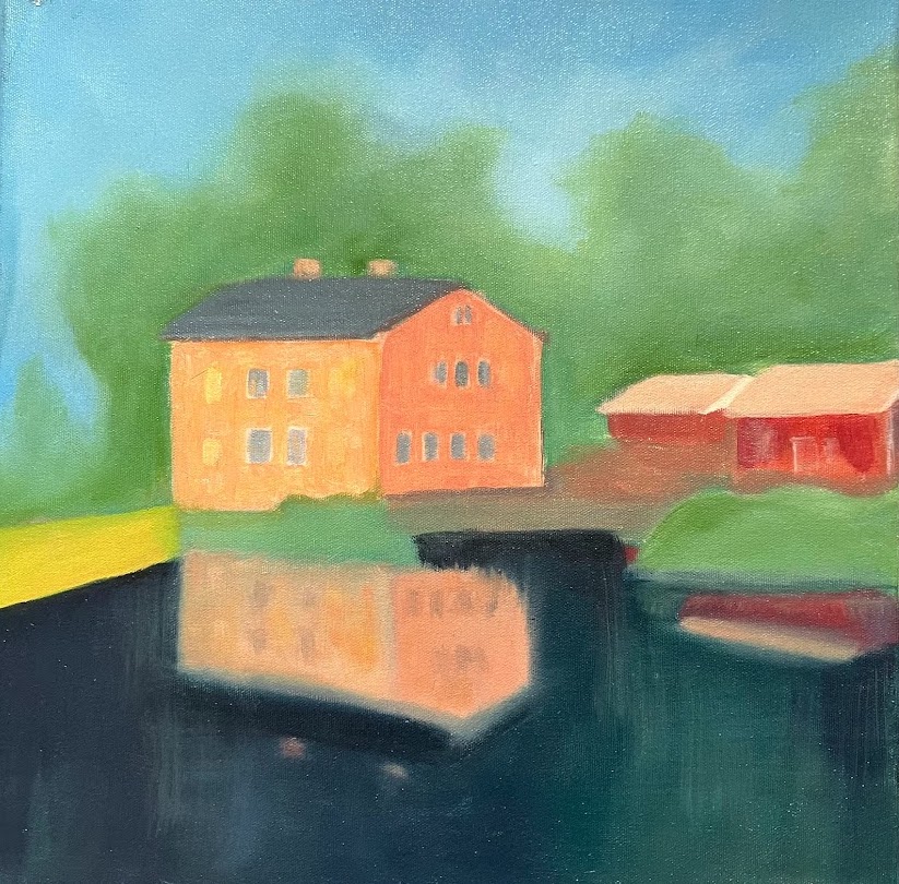 My love of the simplicity of architecture found in the area of my birthplace in Tidaholm, Sweden reminds me to stay close to my love of nature. It is this interplay between landscape – free and wild and the structure of shapes and simple colour in buildings that resonate with me. In my artwork, this is where nature meets art. The goal is to stay brave, open and authentic as an artist.